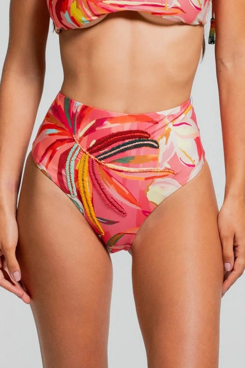 Трусы купальные от колумбийского бренда Cosita Linda. Модель выполнена из высококачественной ткани с эксклюзивными дизайнерскими аксессуарами ручной работы, на подкладе. Благодаря высокой посадке, этот классический силуэт дарит ощущение уверенности и легкости, заднюю часть украшает шнуровка с декоративными деталями.